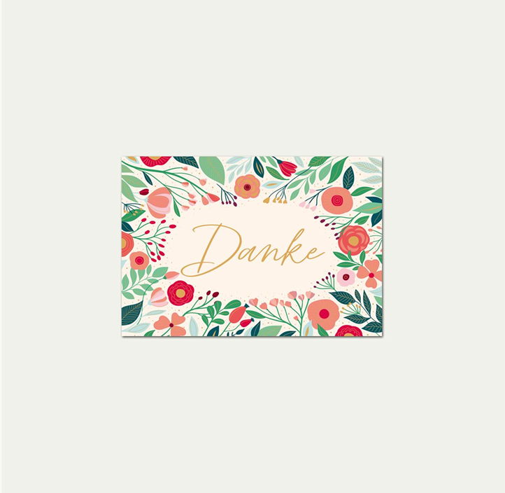 Die Grußkarte Danke mit einem floralen Muster ist eine wundervolle Möglichkeit, um einem besonderen Menschen seine Dankbarkeit und Wertschätzung auszudrücken. Das blumige Design verleiht der Karte eine frische und lebendige Note, die Freude und Dankbarkeit zum Ausdruck bringt. Sie bringt Freude in den Alltag und lässt den Empfänger wissen, dass sein Einsatz geschätzt wird. Daher ist diese Art von Grußkarte ein zeitloser Klassiker, der immer gut ankommt und für strahlende Augen sorgt. Maße: 17,5 x 12 cm